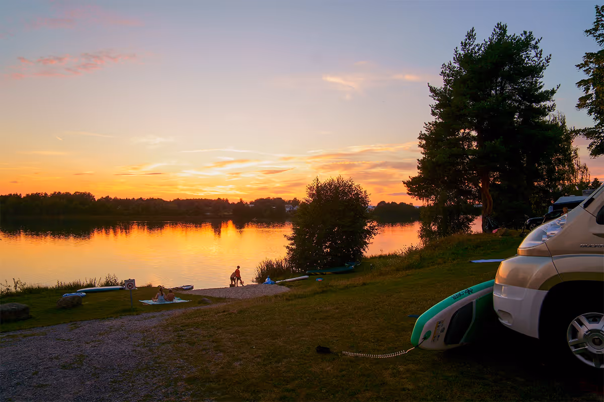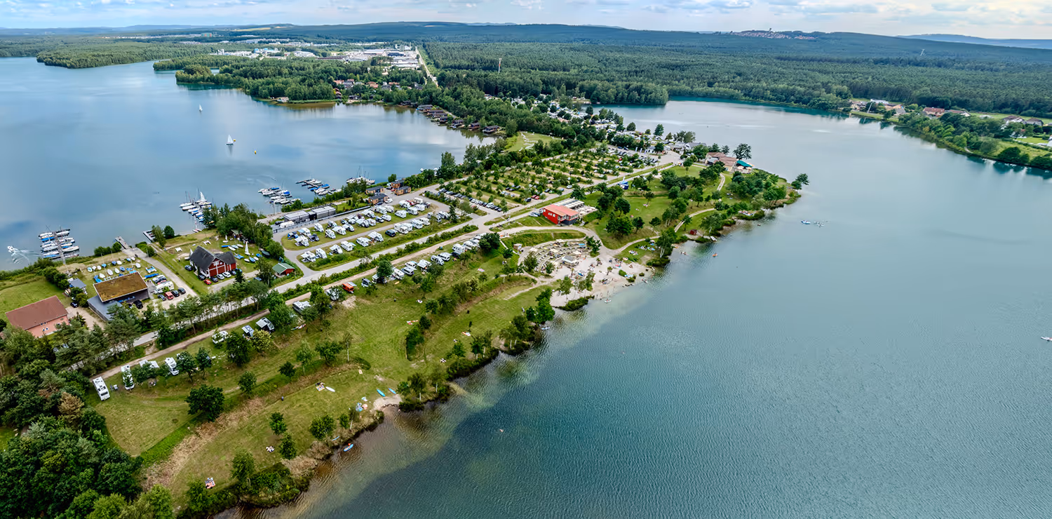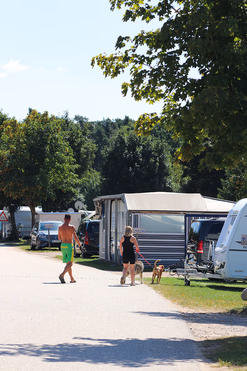 Stellplätze mit einer Fläche von 80 bis 150 m² bieten jedem Gast den notwendigen Abstand für Privatsphäre. Stellplätze der Kategorie A befinden sich in Ufernähe, mit Blick über den See. Die Kategorie B beginnt ab der 3. Uferreihe und ist ebenfalls nur wenige Meter vom Wasser entfernt. Das gesamte Gelände ist barrierefrei und mit kostenlosem WLAN ausgestattet. Ein zentrales Sanitärgebäude sowie eine zusätzliche Toilettenanlage sorgen für Komfort.